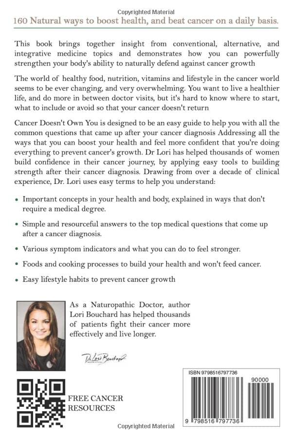 Cancer Doesn't Own You integrates the most commonly asked conventional, alternative and integrative medicine topics, and demonstrates how you can powerfully strengthen your body's ability to naturally build a strong defense against cancer growth. Don’t wait to access this knowledge, get the book now and start integrating all the powerful anti-cancer tools within.